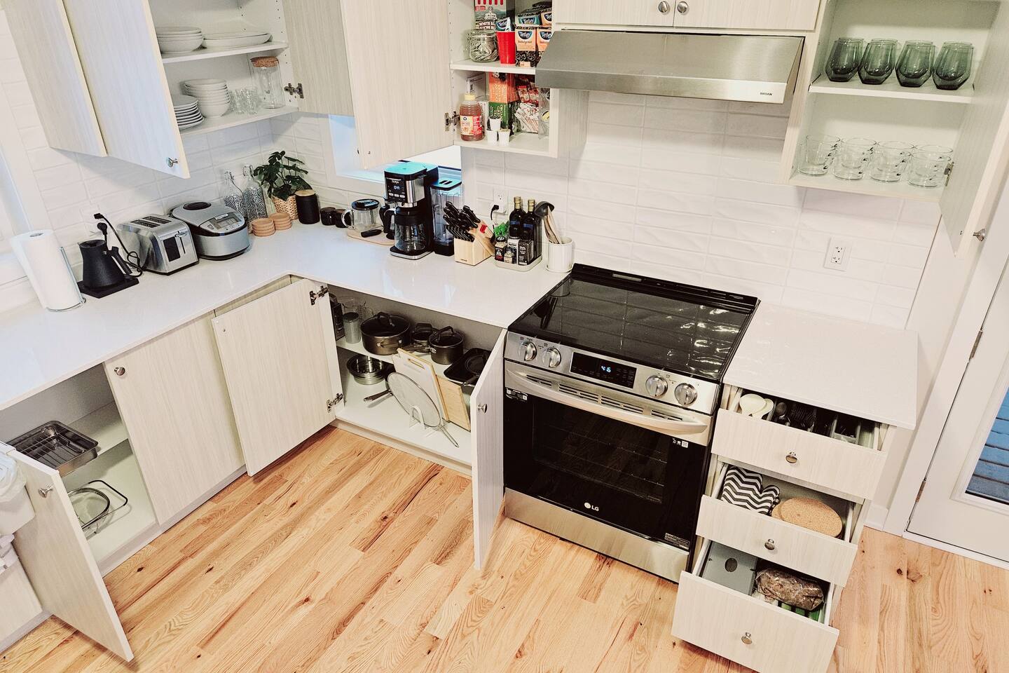 The entire cottage except the unfinished basement will be available. There will be a couple locked cabinets.