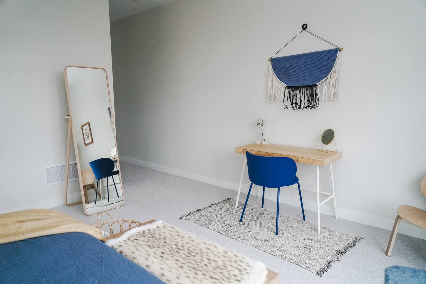 3-4 Parking spots on premises depending on car size, but can park up to 3 additional cars on driveway for a total of 6-7 cars. 5 min walk to future private lakefront clubhouse with water sports, hottub, etc..