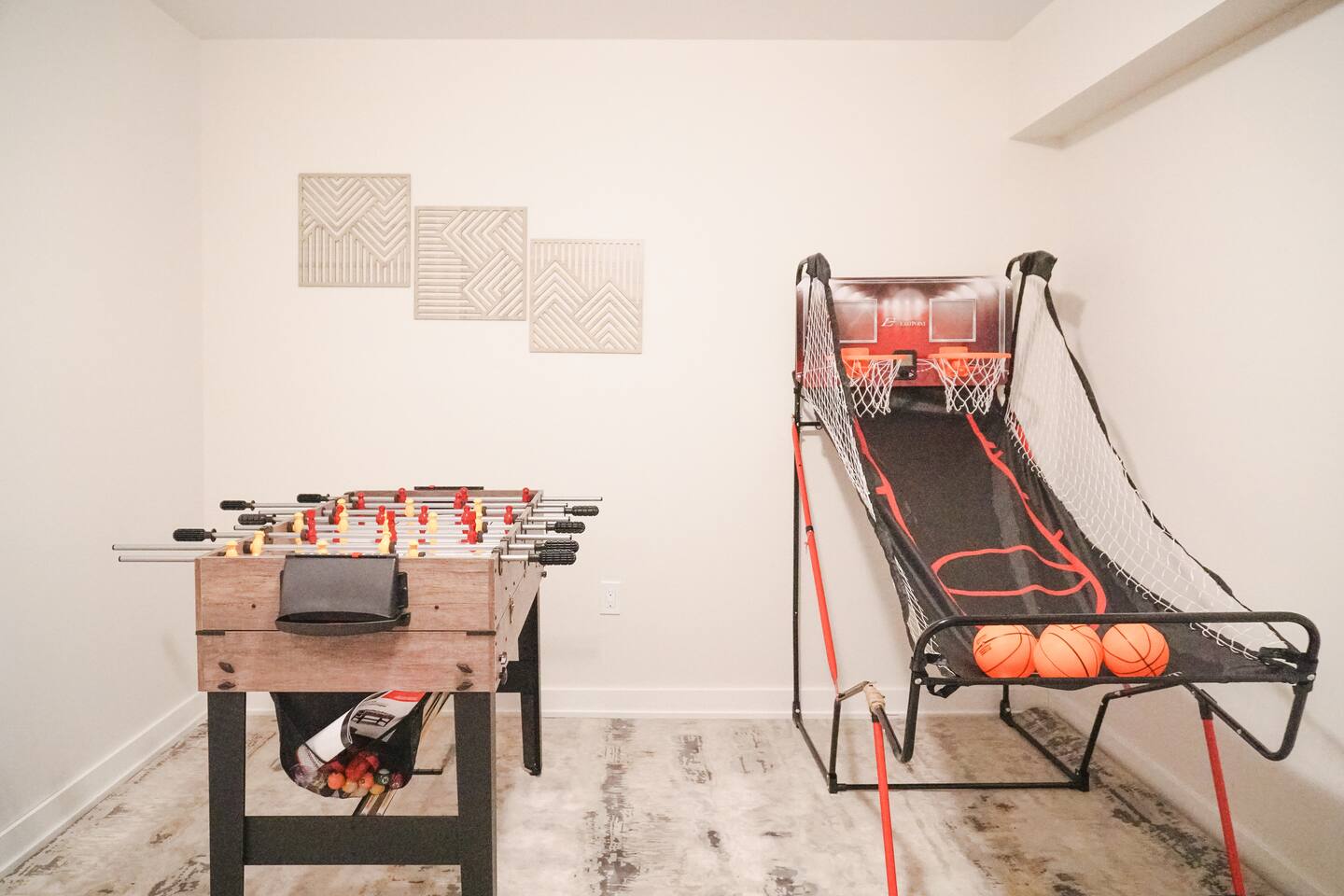 This is a brand new fully furnished 2500+ sq ft 4 bedroom 3 bathroom cottage with a Muskoka room, outdoor deck, games room, firepit and more. This is perfect for 2 families with kids or friends that want to enjoy a luxury getaway in nature without compromising on modern necessities. Up to 35%+ discount for longer stays. Check out our IG @ Navy_Hilltop_Retreat What is there to do in this area? Winter Activities include: -Ski, Snowboarding, snowshoeing and snowmobiling which is 10 minutes to Hidden Valley Ski Slopes & Snowboard Area Spring, Summer, Fall Activities include: -Biking, Hiking, Golf Courses, Rock Climbing, Horseback Riding, Local Microbreweries, and enjoy Wildlife Sightings all 10 minutes away -National parks located 15-20 minutes away including Limberlost Reserve, Arrowhead Park and Algonquin park -Centrally located to many amenities only 10 minutes away to Deerhurst Resort and Dorset. -15 minutes to Huntsville How many Bedrooms and Bathrooms are there? Bathrooms: Total 3 Bedroom 1 : King (primary sleep 2) Bedroom 2: Queen (sleeps 2) Bedroom 3: 2 Twin beds; can be combined to a single Queen(sleeps 2) Bedroom 4: Bunk bed (sleeps 2) What does the cottage include? -A/C and central heating -High speed fiber internet (wifi) -Bedding/linens for indoor use -Basic toiletries, hairdryer, and environmentally friendly soap -Coffee machine and French Press (Keurig/single use, or coffee grounds) with complimentary coffee/tea -Kitchen utensils, plates, and glasses -Toaster, stove, fridge, microwave, dishwasher and rice cooker -Dining table that fits 10 people -Game room including 3-in-1 gaming table (Pool, air hockey, foosball) and basketball -Arcade machine with light guns (over 5000 classic games) -Smart TV and karaoke machine -Board games -6 burner BBQ with propane (We will try our best to keep the propane filled but guests will need to visit the gas station 10minutes away if it is empty to refill it) -Firepit with 6 Muskoka chairs and additional benches -Firepit table with propane (We will try our best to keep the propane filled but guests will need to visit the gas station 10minutes away if it is empty to refill it) -Property uses a well system which is potable and filtered through a water softener Parking fits up to 3 to 5 cars NOTE: By booking this property the primary guest must complete a Pre Check-in Rental Information Form on behalf of the group where you will be asked to provide ages of all guests, full guest list, names, address, employer of the primary guest and a Photo ID of the primary guest etc. Unregistered guests will lead to immediate removal of all guests from property and loss of deposit and without a refund. WINTER: We have hired people to shovel the private driveway during winter and the main road is plowed by the city. However, we are not responsible for the any issues with ice and snow on the driveway or on the road itself. Winter weather can be unpredictable in Muskoka for your convenience please be prepared to shovel or use snowblower if needed. The levels of snow vary greatly from the city.